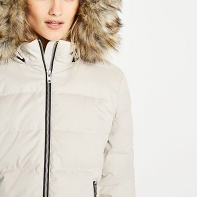• Lady Winter Custom Zip Fastening And Pockets Down Jacket With Faux Fur Trim Hooded